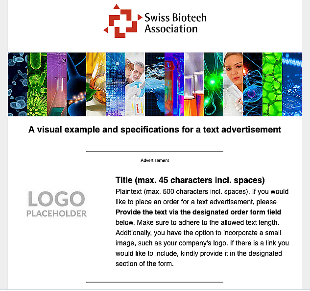 Order your ad in the Swiss biotech newsletter