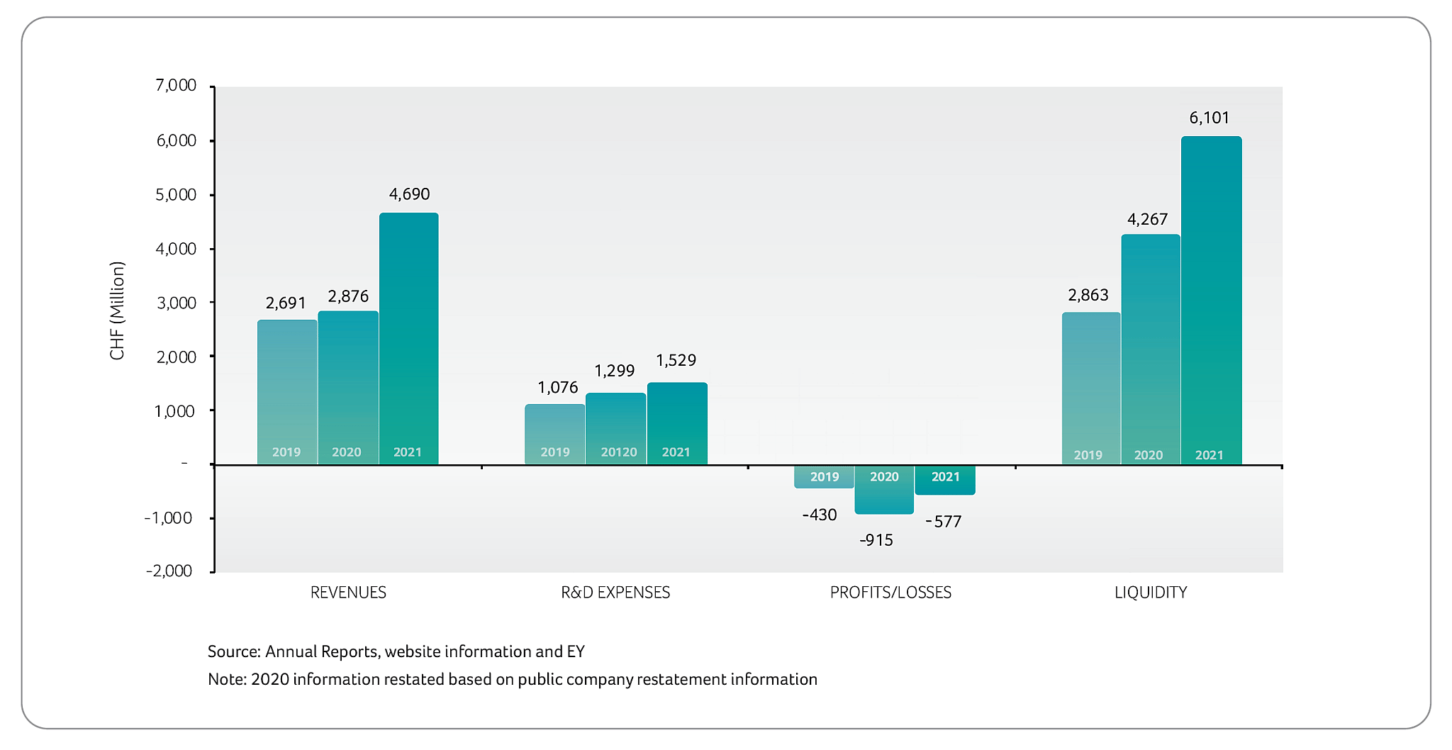 Revenues, R&D expenses, profit/loss, liquidity 2019-2021