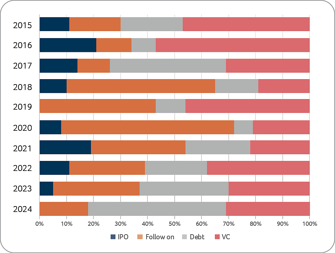 Figure 1: Biotech financing categories in Switzerland 2015 to 2024