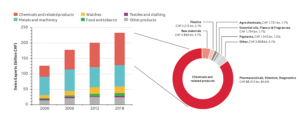 Favorable framework conditions in Switzerland, including a highly qualified workforce, a stable economic and political system and a good network comprising research institutes, companies and government institutions have supported strong economic development. In 2018, exports from the Swiss chemistry, pharma and life sciences sector, including biotech products, reached a record high of CHF 104.3 billion.