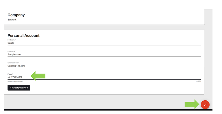 Provide a phone number (will not be shared) and save your entry by ticking it off on the bottom right.